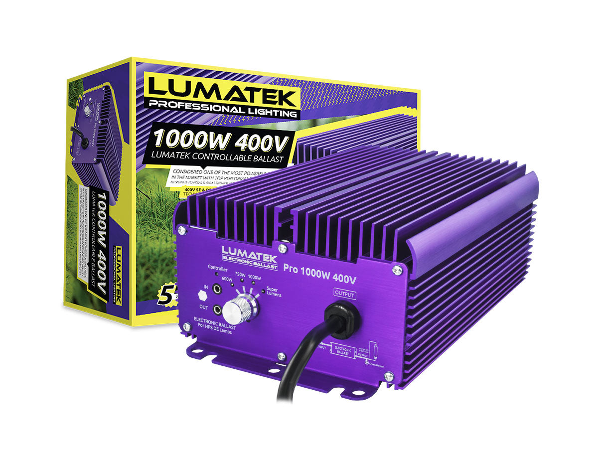 The LUMATEK Pro 1000W 400v Controllable has been developed to connect to 240V power supply and light 600/750/1000W 400V HPS grow lamps.